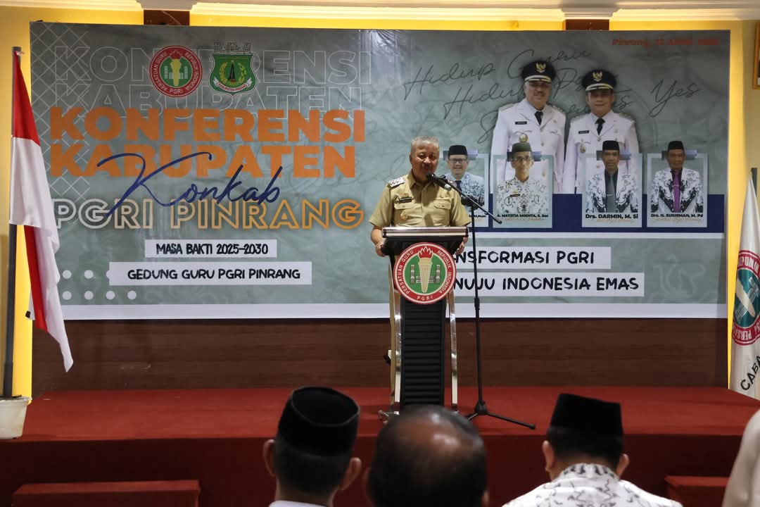 Pinrang — Bupati Pinrang, H. A. Irwan Hamid, S.Sos, secara resmi membuka Konferensi Persatuan Guru Republik Indonesia (PGRI) Kabupaten Pinrang Masa Bakti 2025–2030, Selasa (22/4), di Gedung Guru PGRI Pinrang. Konferensi ini mengusung tema “Transformasi PGRI Menuju Indonesia Emas” sebagai bentuk komitmen dalam mendorong kemajuan pendidikan di Bumi Lasinrang.