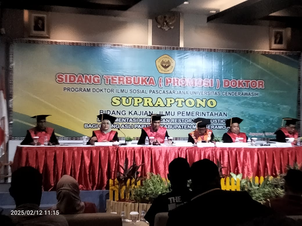 Untuk diketahui, AKP Dr Muhammad Natsir diundang sebagai penguji eksternal pada Sidang Ujian Terbuka (Promosi) Doktor dalam bidang kajian utama Ilmu Pemerintahan saudara Supraptono dengan mempertahankan disertasi berjudul “Implementasi Kebijakan Restorative Justice bagi orang asli Papua di Kabupaten Mamberamo Raya”. Kegiatan ini dilaksanakan di Ballroom Victory Lantai VII Grand Abe Hotel Jayapura. Rabu 12 Pebruari 2025 pukul 14.00 WIT. (*)